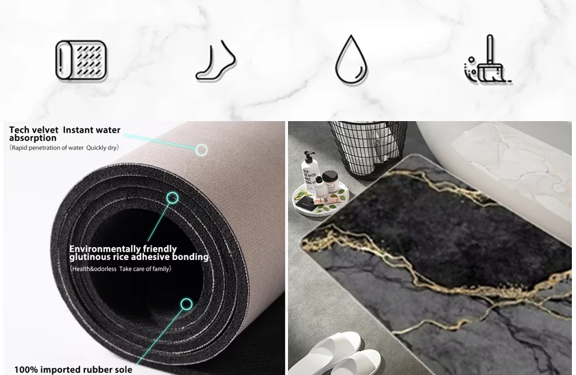 Absorpční rychleschnoucí předložka nejen do koupelny. Ozdobí každou místnost ve vašem domě. Mimořádně příjemná předložka nejen do koupelny vyrobená z inovativní savé pěny. Účinně chrání proti studené podlaze a poskytuje pohodlí při výstupu z vany nebo sprchového koutu. Protiskluzová vrstva zabraňuje uklouznutí.