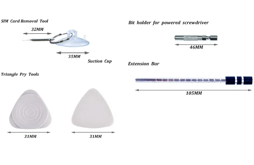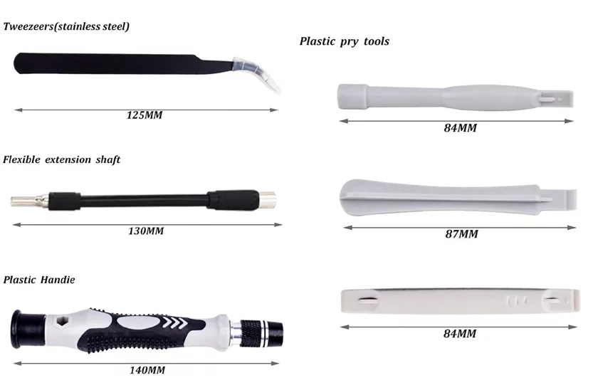 Sadě naleznete veškeré nastávce a potřebné nářadí pro opravy nejen mobilních telefonů.