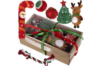 Vánoční radost pro vašeho mazlíčka! Tato sada obsahuje šest pečlivě vybraných hraček z kvalitních materiálů, které zajistí vašemu psovi zábavu, stimulaci i bezpečnou hru. Hračky podporují fyzickou i psychickou aktivitu psa a zároveň pomáhají předcházet poškození nábytku či jiných předmětů doma.