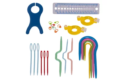 • Bohaté příslušenství pro háčkování a pletení