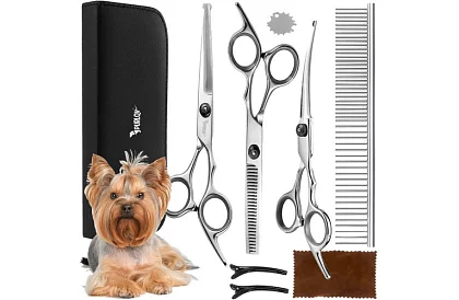 Perfektní nástroj pro domácí i profesionální péči o srst psa. Sada umožňuje upravit srst mazlíčka bezpečně a precizně, udržuje ji zdravou, hebkou a atraktivní. Ergonomické nůžky s protiskluzovou rukojetí a zaoblenými konci chrání citlivá místa, jako jsou oči a uši, a poskytují pohodlné držení při stříhání. Uzavřené pouzdro zajišťuje přehledné uložení a snadnou manipulaci.