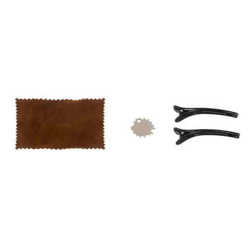 • Součástí pouzdra: 2 sponky, hadřík, 3x nůžky, kovový hřeben