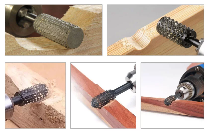 Rotační rašple sedí na běžné vrtačky. Stačí je jen nasadit do vrtačky a můžete se pustit do práce. Pomocí pilníků lze do dřeva vyřezávat nebo jimi dřevo opracujete či zbrousíte. Rotační pilníky můžete použít i na jiné měkké materiály, např. pěnové. Jsou vyrobeny z kvalitní oceli.