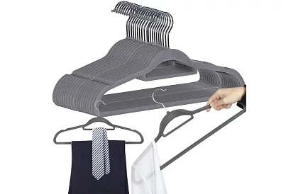 Sada 20 sametových ramínek je ideálním doplňkem vašeho šatníku. Díky otočnému háku a praktickému designu ušetříte místo, zabráníte uklouznutí a záhybům oblečení a snadno uspořádáte své oblečení, kravaty či opasky. Ramínka jsou příjemná na dotek a chrání jemné látky.