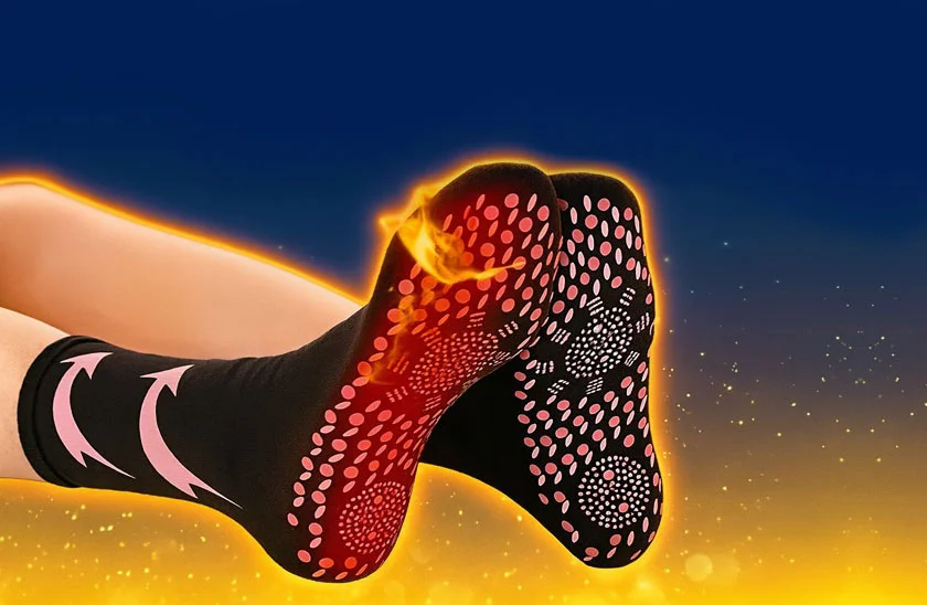 Masážní hřejivé ponožky vás v okamžiku zbaví studených nohou a získáte i spoustu dalších terapeutických účinků. Díky reflexologické mapě na chodidlech si užijete akupunktury. Máte problém se studenýma nohama, s otoky nebo se špatným prokrvením? Nyní jsou zde pro vás vynikající turmalínové hřejivé ponožky vyrobené z kvalitní polyesterové bavlny, které se spolehlivě o vaše nohy postarají. Navíc ochrání vaše nohy, takže se budete moci ještě více věnovat vašim oblíbeným sportům či jiným aktivitám.