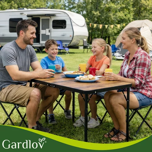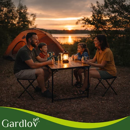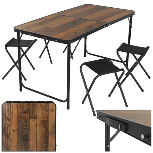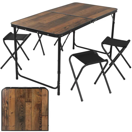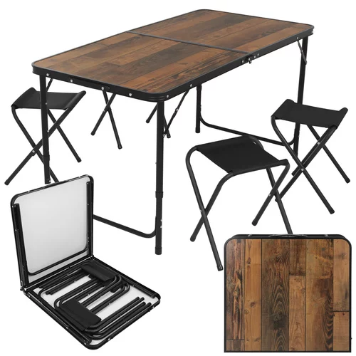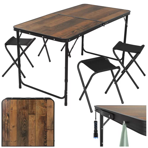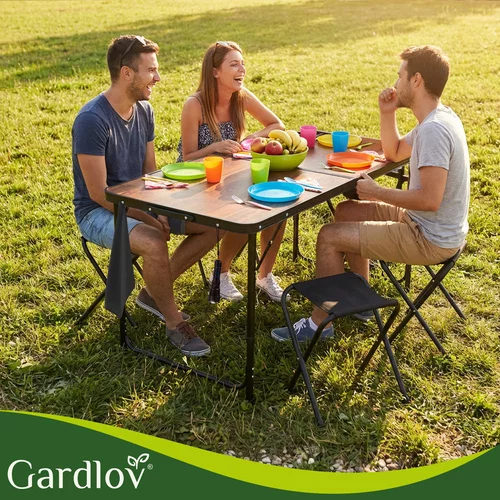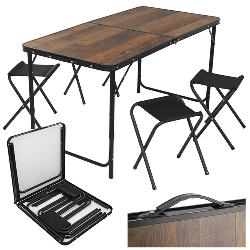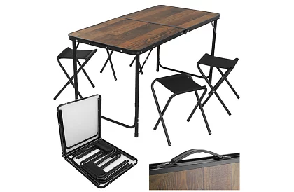 S pohodlnou kempingovou sadou si užijete jídlo i relaxaci venku bez starostí. Sadu lze složit do praktického kufru, což usnadňuje přepravu a skladování. Lehká, stabilní konstrukce umožňuje snadné přenášení a bezpečné používání na různých površích. Nastavitelná výška stolu a 4 skládací židle poskytují komfort pro celou rodinu či partu přátel.