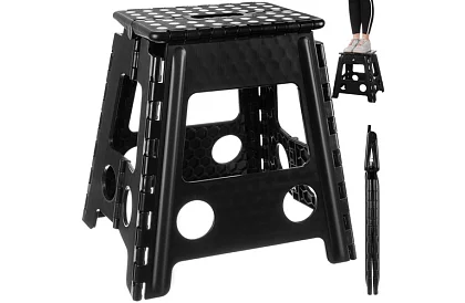 Praktická skládací stolička, která se snadno skladuje a přenáší. Díky skládacímu mechanismu zabírá velmi málo místa a je vždy po ruce, když potřebujete dosáhnout na vyšší polohu nebo pracovat doma či na zahradě. Protiskluzové nohy zajišťují bezpečné použití a sedací plocha s EVA pěnovou prohlubní poskytuje pohodlí. Ideální pro děti i dospělé.