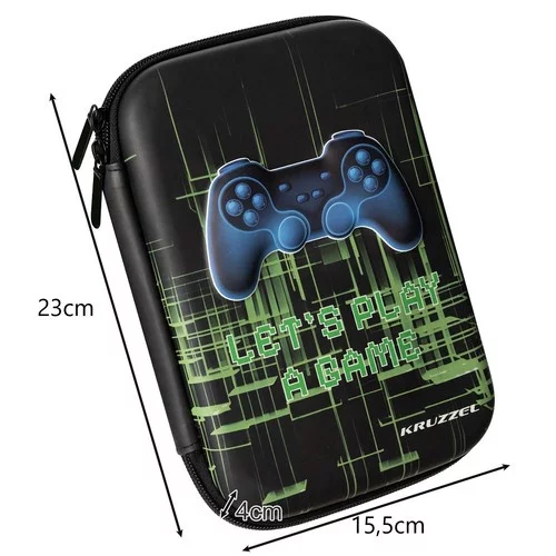 Originální a praktický penál s 3D grafikou „Let’s Play A Game“ zaujme každého školáka nebo kreativce. Kombinuje moderní design s funkčností, která usnadní organizaci školních potřeb. Vyroben z pevné a lehké EVA pěny, která odolá nárazům a vlhkosti, je ideální pro každodenní použití ve škole. Penál umožňuje mít všechny psací potřeby a drobnosti přehledně na jednom místě a díky chráněnému prostoru pod křídlem lze uložit i tablet do velikosti 8,5".
