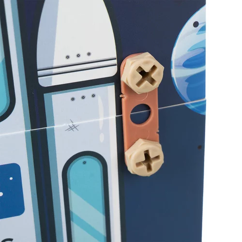 Podporuje kreativitu, logické myšlení a manuální zručnost dětí. Umožňuje stavět trojrozměrné vesmírné struktury s raketami, planetami a astronauty, přičemž elektrický šroubovák a barevné dílky usnadňují sestavení a dodávají hraní realistický nádech. Sada rozvíjí fantazii, koordinaci a sebevědomí, zatímco barevné vzdělávací prvky učí barvy, tvary a precizní dovednosti. Krabička ve tvaru plyšového medvídka slouží zároveň jako montážní deska a praktická nádoba na díly.