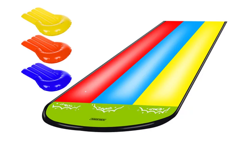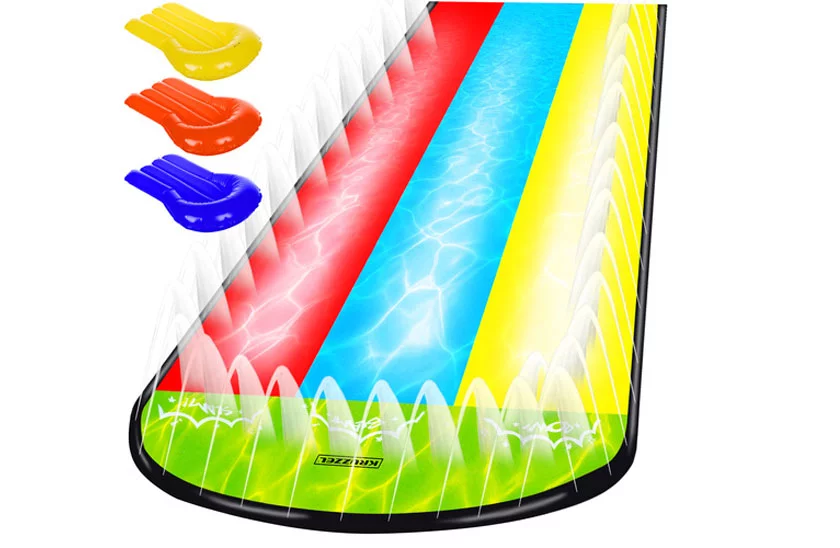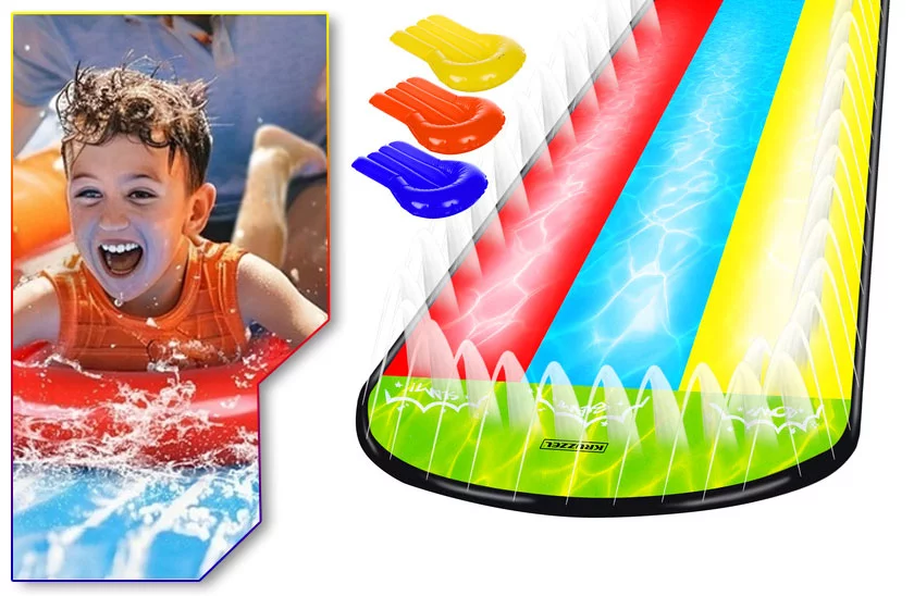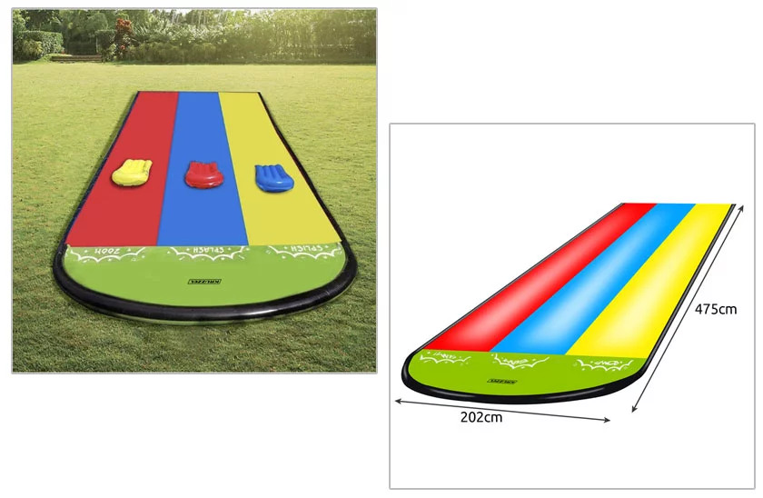 Užijte si léto naplno! Tahle trojitá vodní skluzavka přinese do vaší zahrady pořádnou porci zábavy, smíchu a závodění. Tři jízdní dráhy, tři plavidla a nekonečné možnosti, jak si užít horké dny s rodinou nebo kamarády.