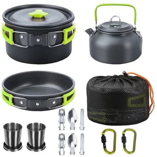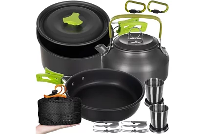 Praktická a kompaktní sada nádobí je ideální pro vaření doma i na cestách, při kempování nebo ve stanu. Umožňuje pohodlnou přípravu chutných jídel pro dvě osoby. Skládací rukojeti a příbory zajišťují snadný transport a úsporu místa, zatímco nepřilnavý povlak umožňuje jednoduché vaření a čištění. Sada nabízí vše potřebné pro komfortní vaření i při outdoorových aktivitách.