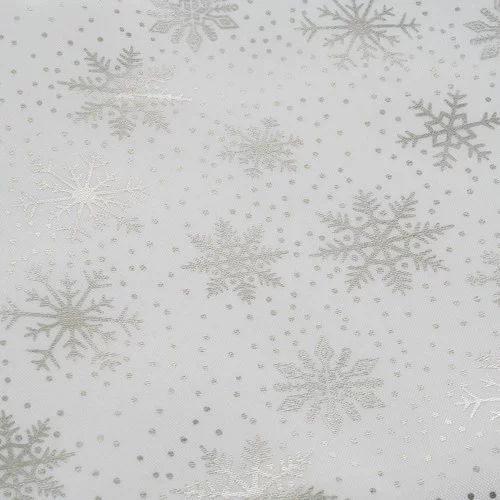 Vytváří sváteční atmosféru a zútulňuje každý interiér. Dekorativní ubrus se stříbrnými sněhovými vločkami přináší do domácnosti kouzelnou náladu a dodává vánočnímu stolování elegantní a slavnostní vzhled. Ochrana povrchu stolu zajistí, že stůl zůstane bez skvrn a poškrábání při podávání jídel a nápojů. Snadná údržba umožňuje rychlé čištění a dlouhodobé používání po mnoho sezón.