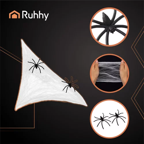 Velká pavučina s dvěma pavouky je skvělou dekorací pro Halloween, tematické večírky, scénografie nebo zahradní prostory pod střechou. Pružný a lehký materiál umožňuje vytvořit poutavou a realistickou pavučinu, kterou lze zavěsit nad dveře, zábradlí, stěny, lampy či stoly. Ideální pro hrůzostrašnou atmosféru, překvapení a zábavu.