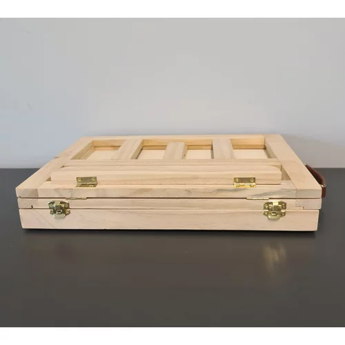 Kompletní malířská sada nabízí ideální vybavení pro kreslení, malování i rozvoj kreativních dovedností. Pevná konstrukce z borovicového dřeva a kovu zajišťuje dlouhou životnost a elegantní vzhled. Praktický dřevěný kufr se zásuvkou slouží nejen k bezpečnému uložení pomůcek, ale po otevření se promění v stolní malířský stojan, který usnadňuje práci při tvorbě obrazů. Bohatá výbava včetně akvarelových barev, štětců, pláten a skicáku umožňuje okamžitě začít tvořit bez nutnosti dokupovat další pomůcky. Kreativní set podporuje umělecký rozvoj, experimentování s technikami a rozvoj fantazie a představuje skvělou volbu pro začátečníky i pokročilé tvůrce.