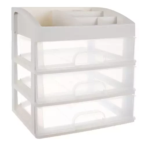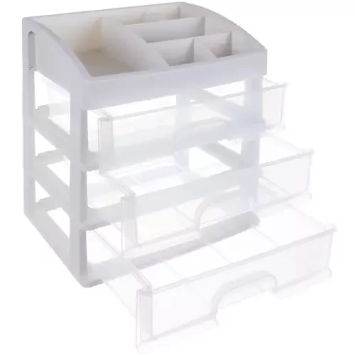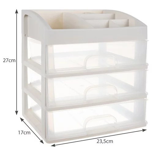Udržte svůj prostor přehledný a snadno dostupný s tímto praktickým organizérem. Díky průhledným zásuvkám rychle najdete vše, co potřebujete, a horní část s přihrádkami umožňuje přizpůsobit úložný prostor vašim potřebám. Organizér je ideální nejen na kosmetiku, ale i na šperky, kancelářské potřeby či drobnou elektroniku – všude, kde chcete mít pořádek a přehled.