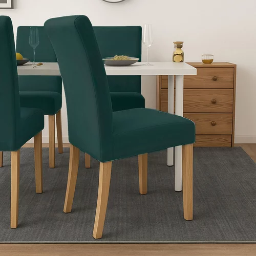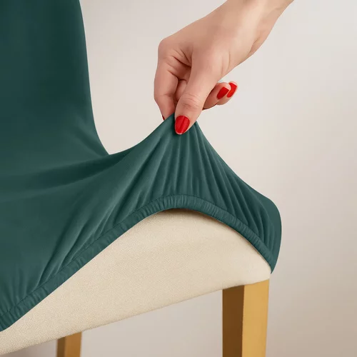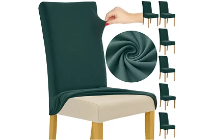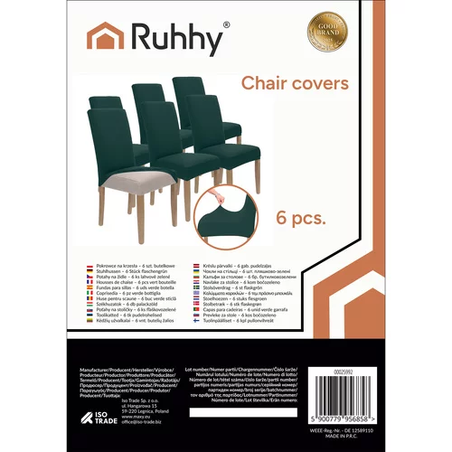 Potahy RUHHY kombinují eleganci, pohodlí a ochranu židlí. Vyrobeny z měkkého polyesteru a elastického spandexu, přilnou ke každé židli a chrání ji před nečistotami a poškozením. Lahvově zelená barva se hodí do různých interiérových stylů a univerzální velikost 65 × 40 × 35 cm padne na většinu standardních židlí.