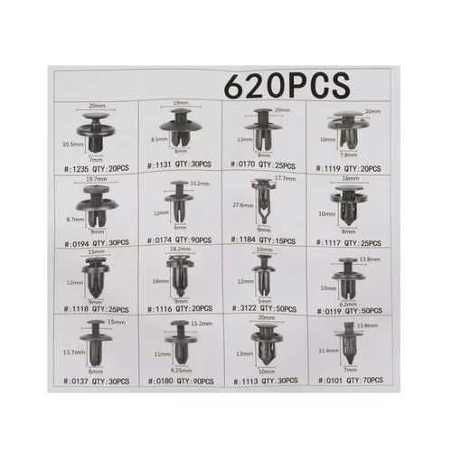 Praktická a kompletní sada klipů a spon umožňuje pevné a spolehlivé uchycení různých částí vozidla. Obsahuje všechny potřebné komponenty pro mechaniky, kutily i majitele aut, kteří chtějí rychle a bezpečně upevnit čalounění, kapotáž nebo další části vozu. Sada zahrnuje i nástroje pro snadné odstranění spon bez poškození vozidla.