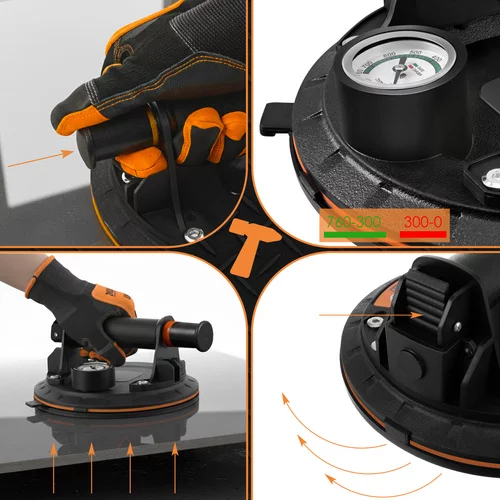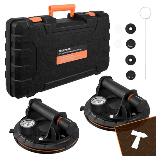 Profesionální sada vakuových přísavek je určena pro bezpečné přenášení těžkých i citlivých materiálů, jako jsou obklady, dlaždice, sklo, desky nebo hladké panely. Díky vývěvě s pumpou, tlakoměru a robustní konstrukci umožňuje jistou manipulaci bez rizika poškození povrchu. Praktické balení se dvěma kusy zvyšuje stabilitu při práci.