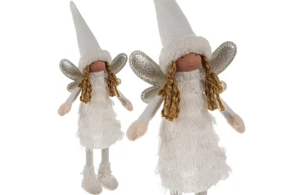 Jemná vánoční víla s bílými a stříbrnými křídly přináší do interiéru pohádkovou atmosféru. Třpytivá křídla dodávají dekoraci lehkost a lesk, zatímco zimní outfit s rolákovými šaty a kožešinovou čepicí podtrhuje sváteční charakter. Stabilní provedení s pevnými botami umožňuje bezpečné postavení na stůl, krb, parapet či pod vánoční stromek. Víla je vhodná jako samostatná dekorace i součást vánočního aranžmá.