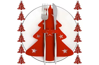 Vánoční kapsy na příbor představují praktický a dekorativní doplněk sváteční tabule. S jejich pomocí můžete každý stůl proměnit ve slavnostní aranžmá, které potěší hosty i rodinu. Kapsy nejenže udržují příbory pohromadě, ale díky svému elegantnímu motivu vánočního stromku také zdobí stůl a vytvářejí vánoční atmosféru.