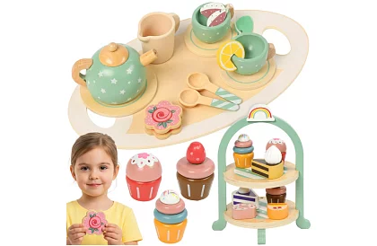 Sladký svět fantazie plný čajových dýchánků, narozeninových oslav a kavárenských her. Bohatá dřevěná sada se stojanem na dezerty rozvíjí kreativitu, jemnou motoriku i sociální dovednosti a přináší dětem radost z hraní bez obrazovek. Pastelové barvy, realistické doplňky a kvalitní dřevěné provedení zaručují bezpečnou a dlouhotrvající zábavu doma i ve školce.