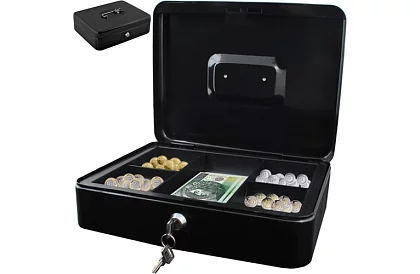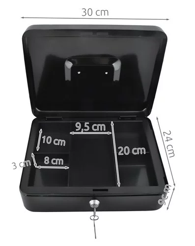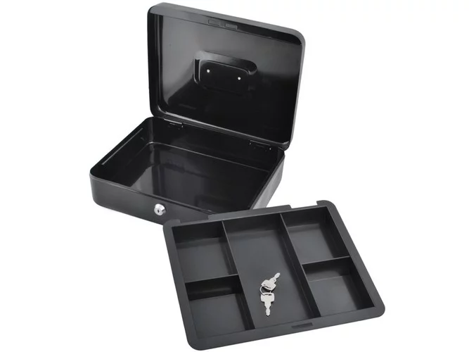 Velká kovová pokladna je praktické a bezpečné řešení pro uložení hotovosti, dokladů, cenných papírů i drobných cenností. Díky pevné ocelové konstrukci a spolehlivému patentovému zámku ochrání obsah před neoprávněným přístupem. Ideální pro domácnost, kancelář, provozovnu i přepravu peněz.