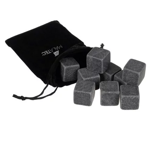 • Materiál: sklo, silikon, dřevo (stojánek), kámen (kostky), polyester/nylon (sáček), sklo (sklenice), korkové dřevo (podložky), nerez ocel (kleště, trychtýř, zátka)