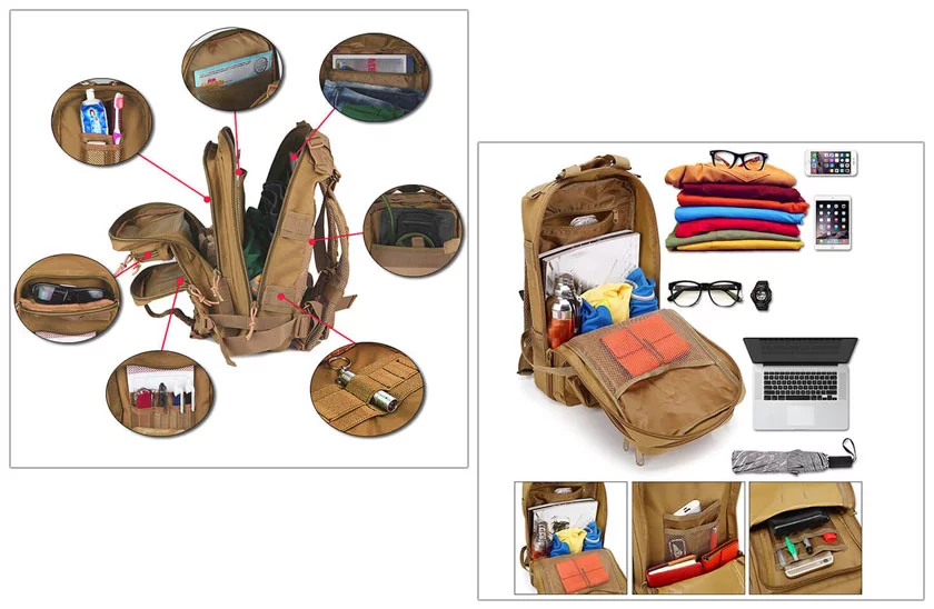 Praktický survival batoh o obsahu 28 litrů. Batoh je vyroben z kvalitních a velmi pevných materiálů, má dvojité prošívání a je voděodolný. Batoh je rozdělen na dvě hlavní komory a dvě menší, např. na doklady nebo drobnosti. Díky dvojitým hlubokým zipům můžete batoh otevřít jako kufr. Batoh je ideální pro sport, turistiku i každodenní použití.