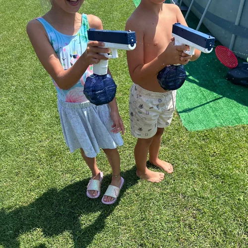 Elektrická vodní pistole přináší hodiny zábavy a osvěžení při hrách na zahradě, u bazénu nebo na pláži. Automatický režim střelby umožňuje nepřetržité vystřelování bez ruční pumpy a snadno zapojitelný USB nabíjecí systém zajišťuje rychlé a pohodlné doplnění energie. Dvě velikosti zásobníků umožňují přizpůsobit hru délce vodní bitvy, a kompaktní design pistole zaručuje jednoduchou manipulaci a přenášení.