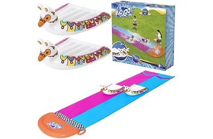 Proměňte zahradu v letní zábavní centrum s originální vodní skluzavkou Lama Rama, která nabídne dětem spoustu pohybu, smíchu a osvěžení. Dvoudráhová skluzavka o délce téměř 5 metrů je ideální pro závody i společné hraní. Po připojení zahradní hadice se aktivují vodní sprchy, které udržují povrch kluzký a zpříjemňují jízdu. Součástí balení jsou také dvě nafukovací podložky ve tvaru lamy pro ještě větší zábavu.