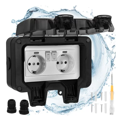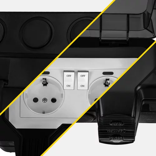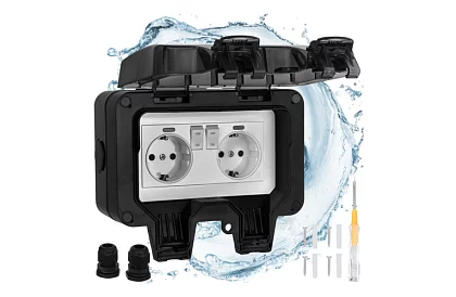 Dvojitá venkovní zásuvka je spolehlivé a bezpečné řešení pro napájení elektrických zařízení ve venkovním prostředí i v místech se zvýšenou vlhkostí. Díky vysokému krytí IP66 a odolné konstrukci ji můžete využít na zahradě, v garáži, dílně nebo technické místnosti.