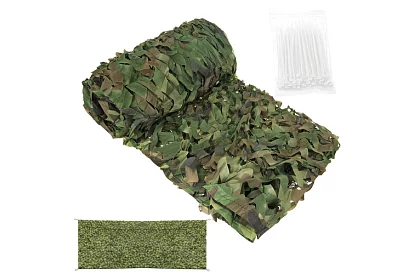 Lesní maskovací síť poskytuje efektivní stín, soukromí a ochranu majetku či vybavení v terénu. Vhodná pro zahradu, kempování, airsoftové hry nebo práci v přírodě, nabízí odolnou, lehkou a voděodolnou konstrukci, kterou lze využívat celou sezónu za různých povětrnostních podmínek. Součástí sady je 100 stahovacích pásků pro rychlou a snadnou montáž.