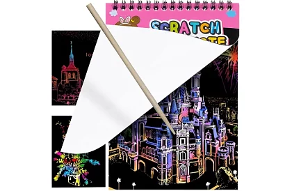 • Zábavná hračka na kreslení vyškrabáváním černého povlaku