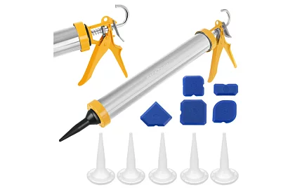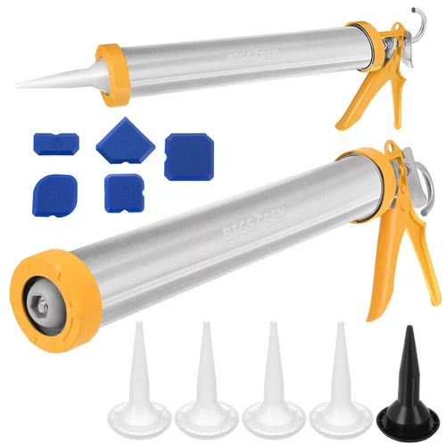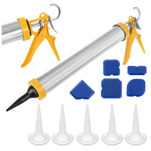 Hladké a přesné nanášení silikonových a těsnicích hmot nikdy nebylo jednodušší. Vytlačovací pistole umožňuje rychlé a rovnoměrné dávkování hmoty bez šmouh a nerovných spár. Přiložené trysky a špachtle umožňují okamžité uhlazení a dosažení profesionálního výsledku při tmelení doma i v práci. Ergonomická spoušť a pevná kovová konstrukce zajišťují pohodlí a stabilitu i při delším používání.