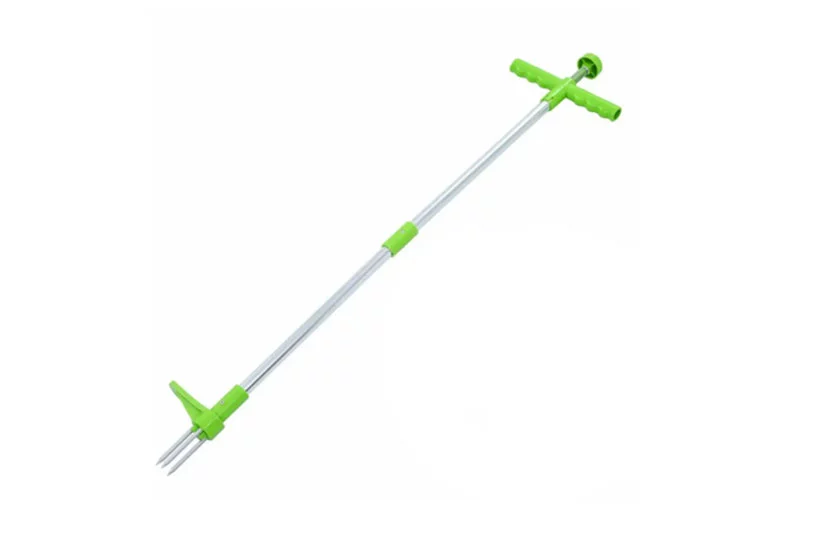 Odstraňovač plevele s dlouhou tyčí vám umožní vytrhávat plevel vestoje, aniž byste museli ohýbat záda a riskovat, že vás v nich bude bolet. Vytrhávač se velmi snadno a bezpečně ovládá pomocí ergonomické rukojeti. Opěrka na nohu pak umožňuje vyvinout zvýšený tlak. Stačí plevel propíchnout drápky, otočit ergonomickou rukojetí a rostlinu vytáhnout. Integrovaný mechanismus s pružinou pak nežádoucí plevel z drápků odstraní pouhým stisknutím horního tlačítka.