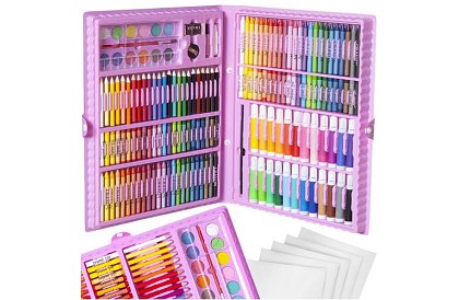 168 prvků – souprava obsahuje 24 pastelek, 24 fixů, 48 olejových pastelů, 48 svíčkových pastelů, 12 akvarelových barev, štětec, malířskou paletu, ořezávátko, tužku, lepidlo, korektor, gumu a 5 listů papíru A4, takže děti snadno vytvoří nejkreativnější a originální díla.
