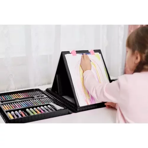 Bohatá výtvarná sada v praktickém kufříku nabízí vše, co děti potřebují pro kreslení, malování i kreativní hraní. Přehledně uspořádané přihrádky udrží všechny pomůcky na svém místě doma i na cestách. Díky bezpečným, netoxickým materiálům a promyšlenému provedení je sada vhodná pro každodenní používání a podporuje rozvoj fantazie, jemné motoriky i radosti z tvoření. Ideální jako dárek, který zabaví na dlouhé hodiny.