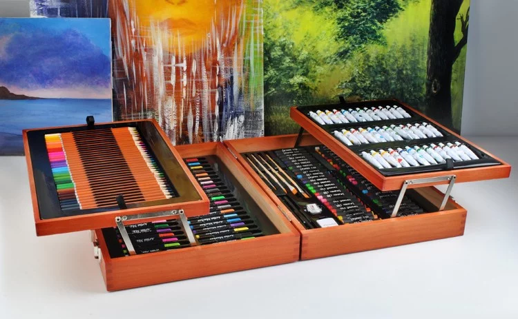 Objevte svět kreativity a umění s výtvarnou sadou obsahující 177 prvků pro malování a kreslení. Dřevěný kufr s pevnými sponami drží vše pohromadě, takže se sada nepoškodí ani během přepravy a je ideální pro použití doma i na cestách. Sada je vhodná pro mladší i starší děti, stejně jako pro dospělé, kteří chtějí rozvíjet svůj talent a kreativitu. Elegantní dřevěné pouzdro zaručuje, že každý prvek má své místo, a poskytuje snadný přehled i rychlý přístup k barvám, pastelkám či štětcům.
