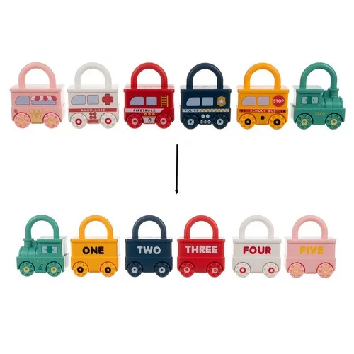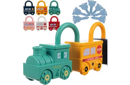 Sada autíček s visacími zámky spojuje zábavu a učení, podporuje rozvoj jemné motoriky, koordinace ruka-oko a logického myšlení. Barevné vozy s čísly a anglickými názvy pomáhají dětem poznávat čísla, barvy a jednoduché anglické výrazy, zatímco manipulace s klíči rozvíjí soustředění a trpělivost.