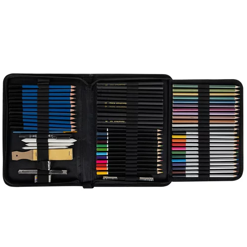 Komplexní kreslířská sada nabízí vše potřebné pro skicování, kreslení i stínování v jednom praktickém balení. Bohatý výběr nástrojů umožňuje vytvářet detailní skici, ilustrace i umělecké studie. Elegantní látkové pouzdro s přehledným uspořádáním udržuje všechny pomůcky bezpečně na svém místě a zároveň usnadňuje přenášení. Díky široké škále tužek různých tvrdostí, pastelek a doplňků získá uživatel maximální kreativní svobodu při práci. Ideální řešení pro začínající kreslíře, studenty i pokročilé umělce, kteří chtějí mít všechny základní nástroje vždy po ruce.