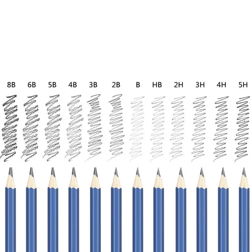 • 12 skicovacích tužek (2H, 3H, 4H, 5H, HB, B, 2B, 3B, 4B, 5B, 6B, 8B)