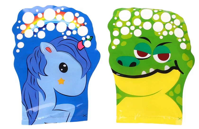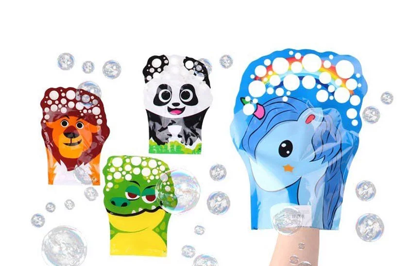 Zábavné rukavice se zvířecím motivem a bublifukem na tvorbu bublin, ideální venkovní hračka pro děti. Bubliny, jenom samé bubliny. Vyndejte bublifuk, nasaďte si zvířátkovou rukavici na ruku a bublinková zábava může začít. Máchejte rukou, točte se, skákejte nebo nastavte rukavici větru. Trochu bláznivé, ale rozhodně zábavné.