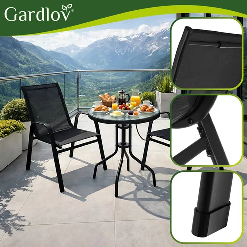 Stabilní železná konstrukce s práškovým lakováním zajišťuje dlouhou životnost a ochranu proti korozi. Sedací část s prodyšnou PVC tkaninou se přizpůsobí tělu a poskytuje komfort i při delším sezení. Materiál je zároveň odolný vůči UV záření, takže si židle dlouhodobě zachovají svůj vzhled. Praktickou výhodou je možnost stohování, díky které lze židle snadno skladovat a šetřit místo.