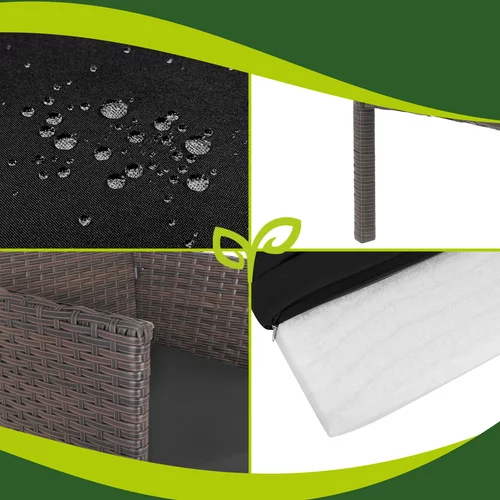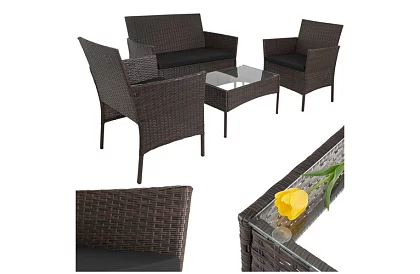 Stylová zahradní sestava z technoratanu vytváří pohodlné místo pro odpočinek na terase, balkoně nebo zahradě. Kombinace pevné pozinkované ocelové konstrukce, odolného technoratanu a pohodlných sedacích polštářů přináší komfort i dlouhou životnost při venkovním použití. Praktický konferenční stolek se skleněnou deskou poskytuje ideální prostor pro odložení nápojů, dezertů nebo drobného občerstvení. Elegantní hnědé provedení se snadno hodí do různých venkovních prostor a pomůže vytvořit příjemný relaxační kout pro rodinu i přátele.