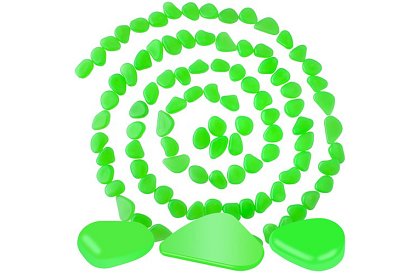 Krásná dekorace, která během dne pohlcuje světlo a večer září intenzivní fluorescenční září. Kameny jsou odolné vůči povětrnostním vlivům, bezpečné a netoxické, vhodné k ozdobení zahrady, chodníků, květináčů, vázy nebo i akvária. Hrany jsou jemně leštěné, což zajišťuje pohodlné a bezpečné používání.