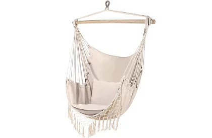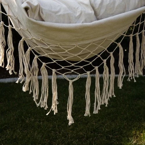 Pohodlné závěsné křeslo pro každodenní relaxaci na zahradě, terase i balkonu. Kombinace přírodní bavlny a odolného polyesteru zajišťuje příjemné sezení, dobrou prodyšnost a dlouhou životnost. Stabilní konstrukce s dřevěnou příčkou pomáhá udržet správnou polohu těla při čtení, odpočinku nebo krátkém spánku. Součástí jsou dva měkké polštáře, které výrazně zvyšují komfort.